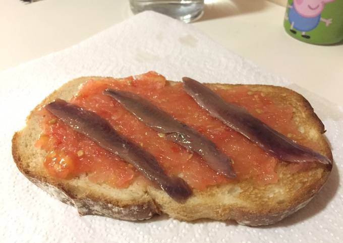 3. Pan Tumaca con Anchoas y Aceitunas 🥖🐟