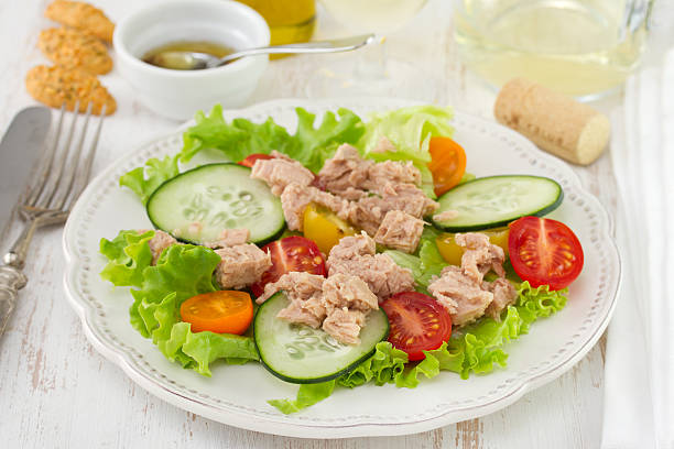 - En un bol grande, mezcla el atún con el pepino, tomate, aceitunas y queso feta.